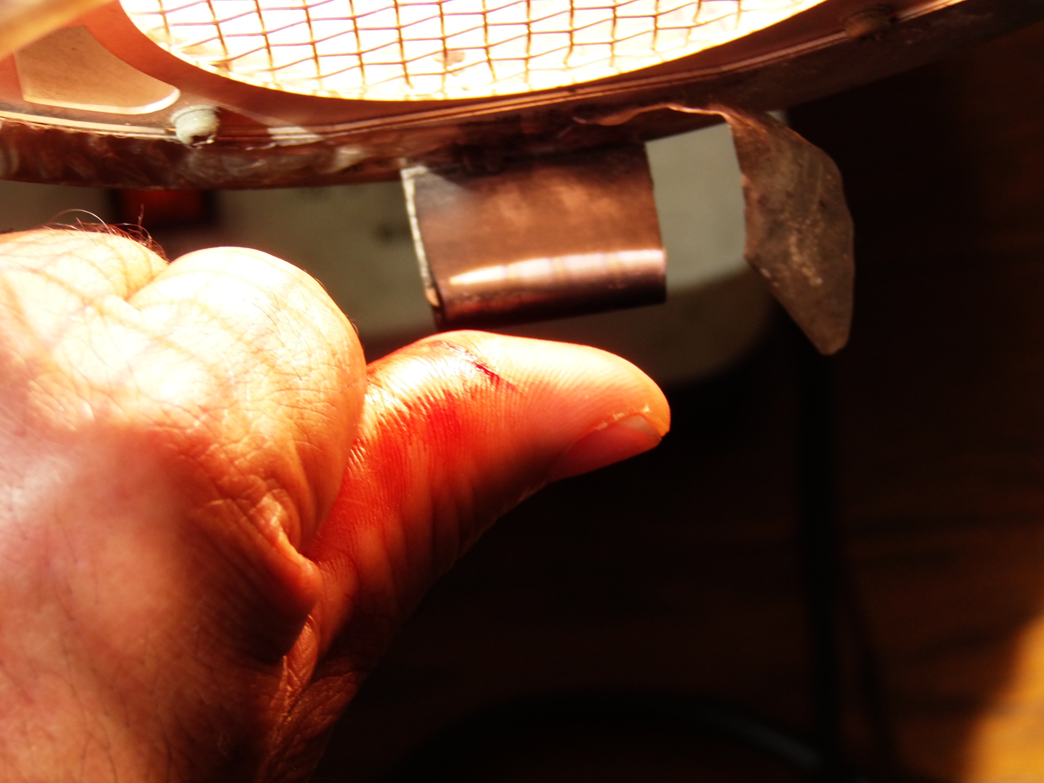 親指に力が入りすぎ割れた小口で切りました!!