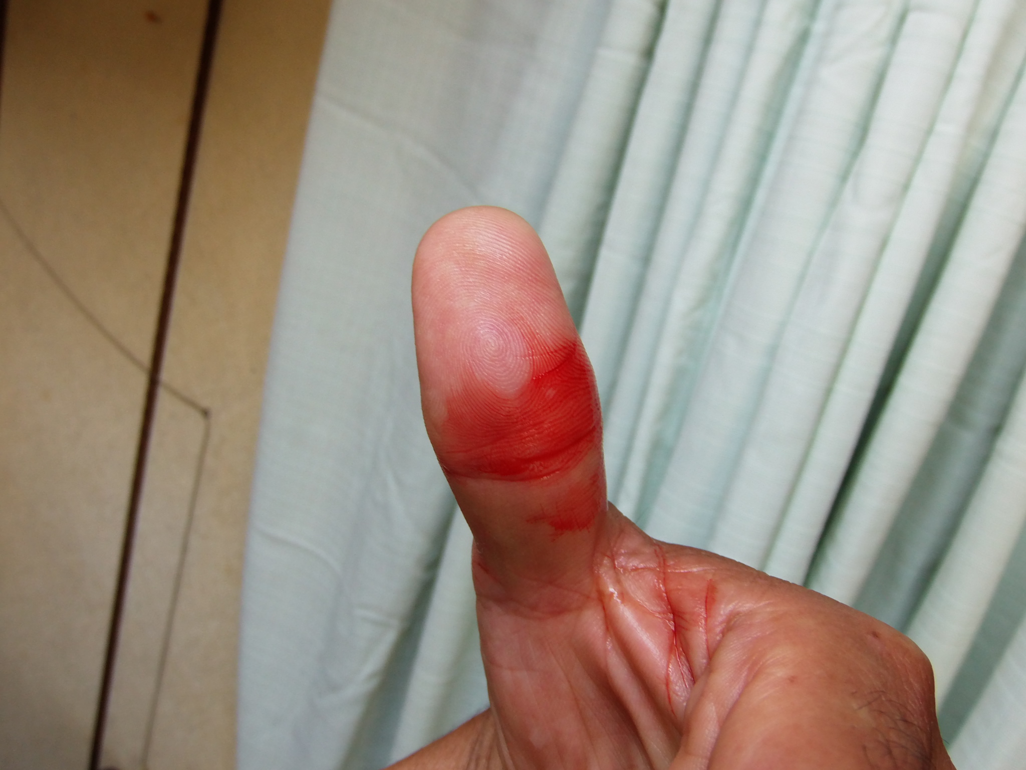 左手親指約2cmほどを切ってしまいました!!